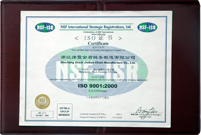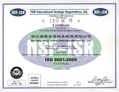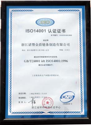 金盾链条制造有限公司建立了科学严密的企业管理体系,公司的技术、销售、财务、品质检验等主要部门均已使用计算机管理。1998年度公司通过ISO9002质量体系认证,于2002年度通过ISO9001质量体系认证,把公司的管理纳入有序的轨道,逐步建立起现代企业制度。